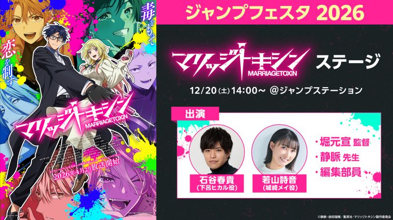 2025/12/20(土)・21(日)に開催されるジャンプフェスタ2026のバンダイナムコフィルムワークスブースにて、TVアニメ『マリッジトキシン』の出展が決定いたしました!